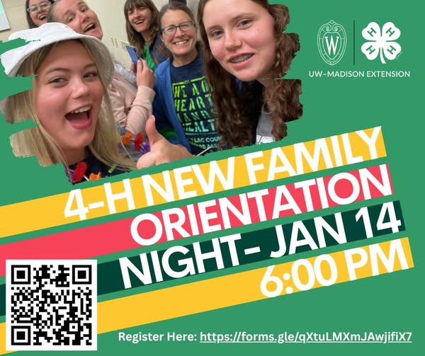 4-H has so many great opportunities available, and it is hard to know about them all. We don’t want our members to miss out! New families can expect to meet other new families, have questions answered, and learn about various topics such as projects, general meetings, 4-H Structure, and different opportunities.