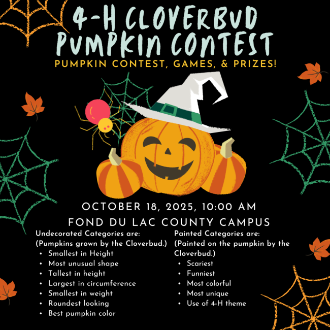 Youth in grades K-2 are invited to enter their pumpkins into the annual Cloverbud Pumpkin Contest!