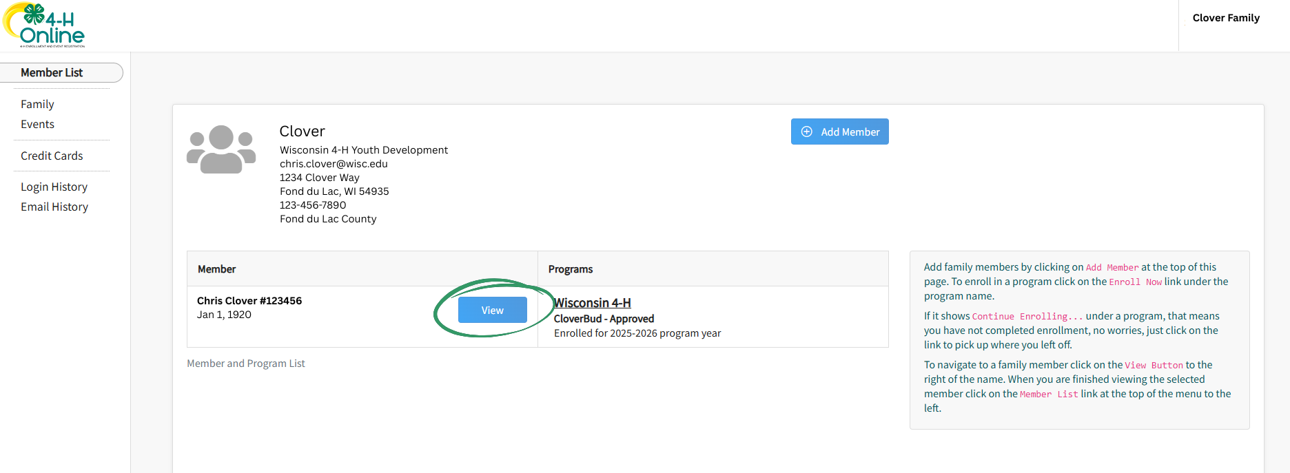 2. Click the blue “View” button next to the member you wish to see.