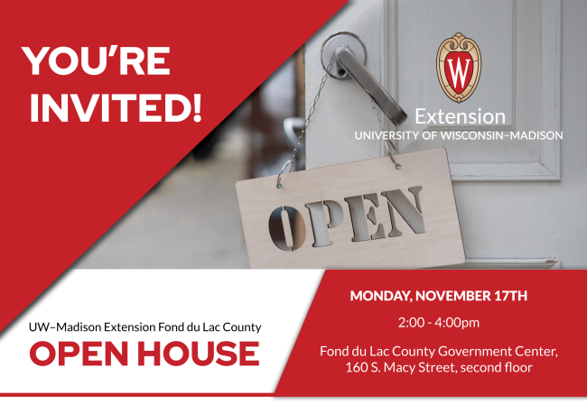 UW–Madison Extension Fond du Lac County is excited to invite you to an open house celebrating our new office location at the Fond du Lac County Government Center!